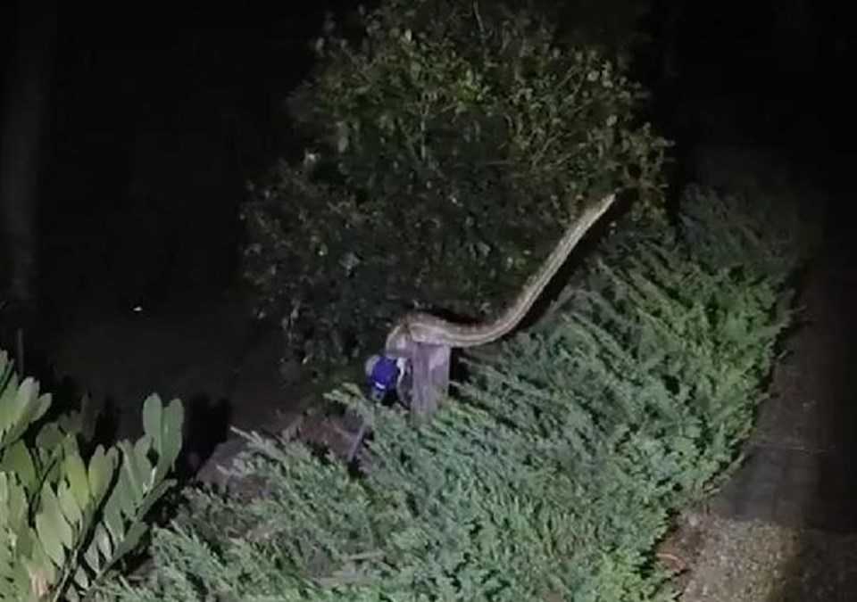 While the woman calling the emergency service was rescued by the police, the python was released back to nature.