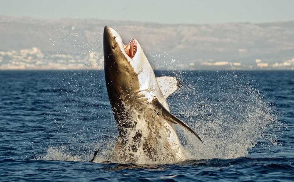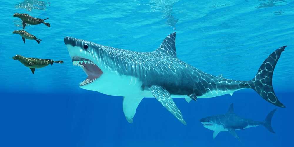 Revealed that only the fins of the giant shark were the size of an adult human. The great white shark depicted in the 1975 movie Jaws. It is a distant descendant of the megalodon and is usually more than 6 meters in length.