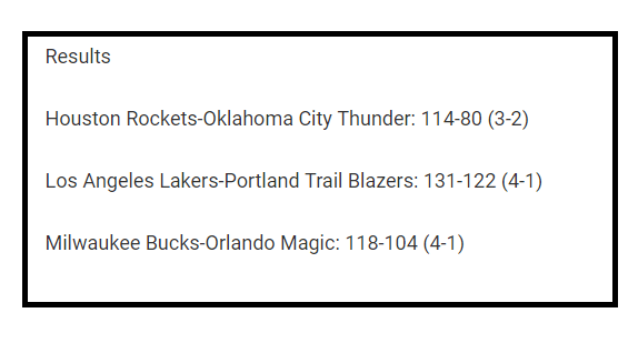 Los Angeles Lakers, teams that are 3-1 ahead in the play-off first round series, Portland Trail Blazers 131-122. The Milwaukee Bucks also won the Orlando Magic 118-104.
