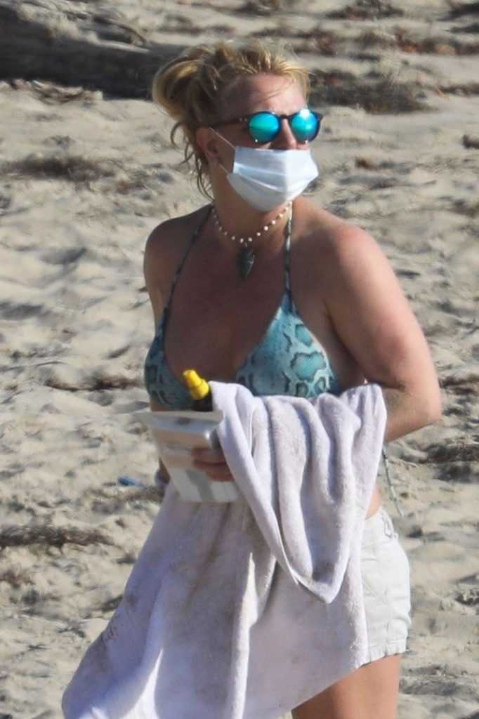 Singer Britney Spears who received mental health treatment last April and scared her fans. The previous day was reflected in lenses on a beach in Malibu. It was seen that 38-year-old Spears, who was away from the screens, combined her snakeskin patterned bikini with blue glasses.