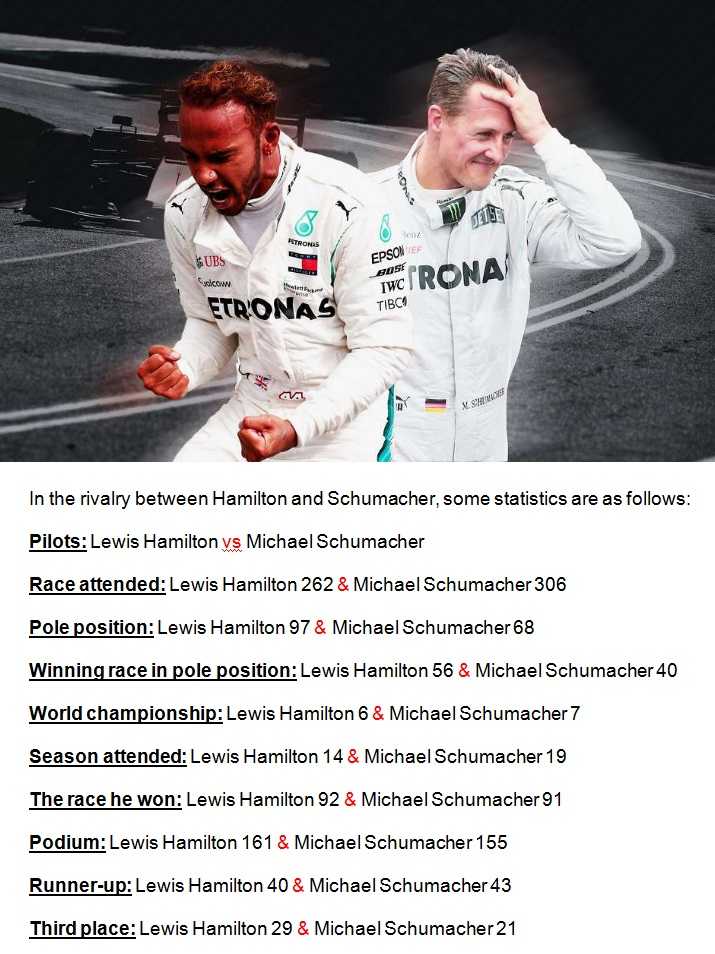 Schumacher, who made his name among the legends of the organization with the Ferrari team in Formula 1. There are also great similarities between the statistics of Hamilton, who had great success with the Mercedes team.