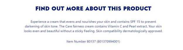 Nivea’s Natural Fairness line is sold in the Middle East, India as well as Nigeria and Ghana.
