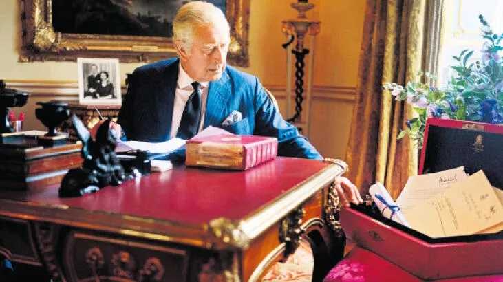In the new photos served by Buckingham Palace, the new king of England is seen at work, while the famous red box belonging to his mother is located next to it. The red boxes contain paperwork from government ministers in the UK and other kingdoms.