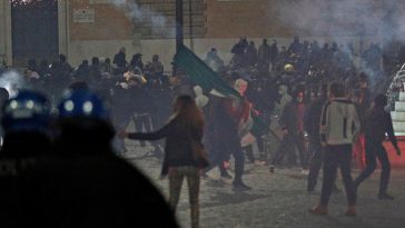 Mounted and armored policemen, police dogs and tear gas intervened the demonstrators gathered in the 18 September Square in the city of Eindhoven.