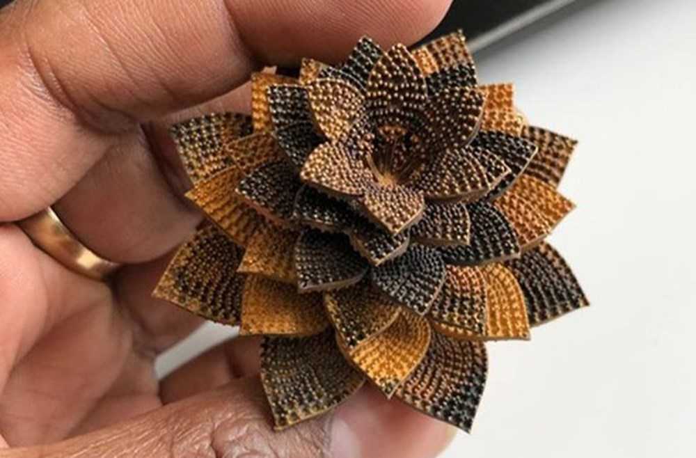 The golden ring consists of 6 different layers, and these layers depict a flower that grows in the Himalayas.
