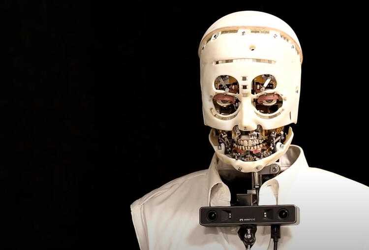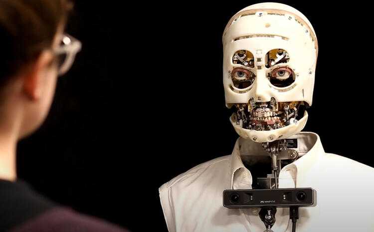 Drawing attention with its skinless humanoid design, the robot can make eye contact. The scary robot developed by Disney can maintain eye contact with a moving subject.
