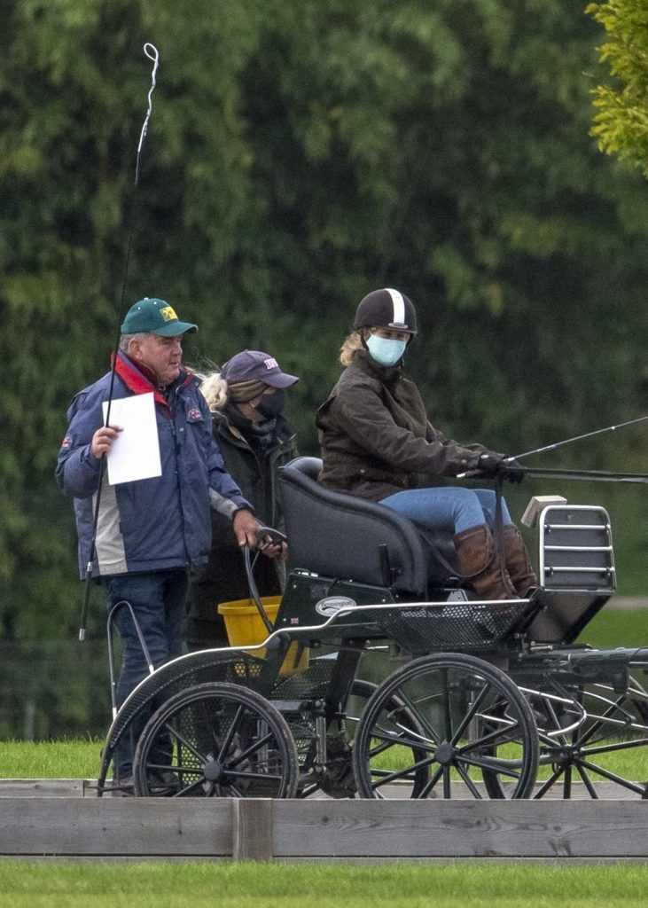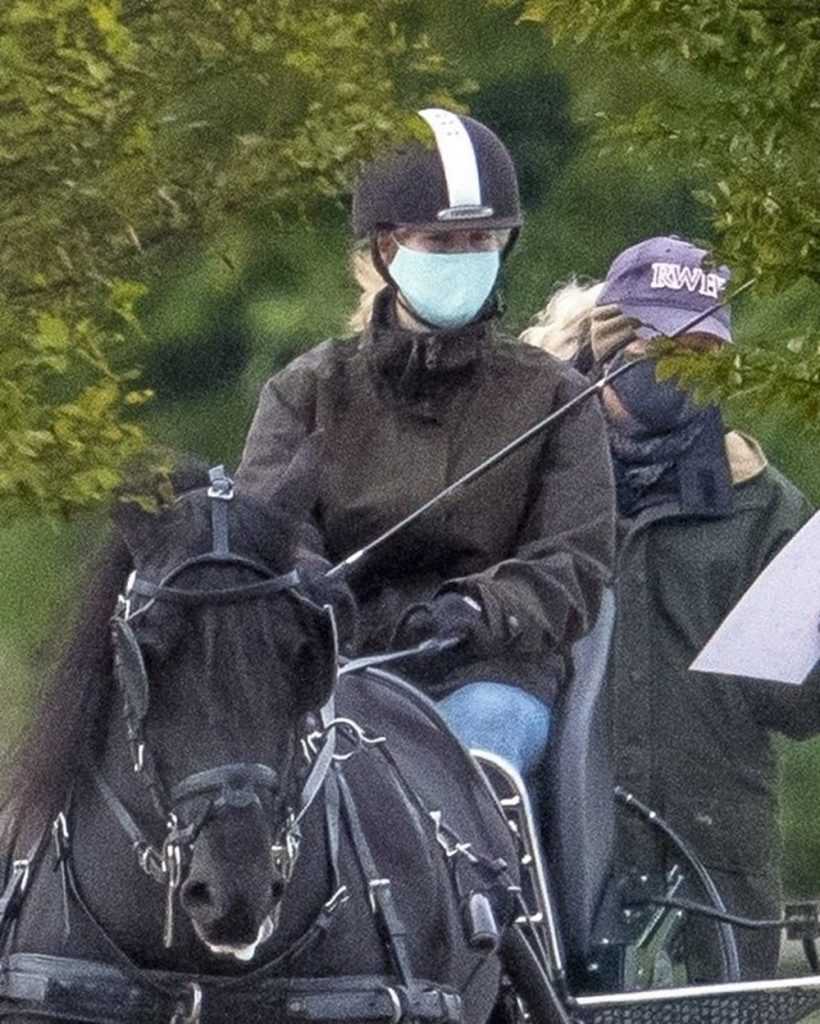 The lady, who took lessons in the lush green land in Windsor, seen wearing a protective mask against coronavirus.
