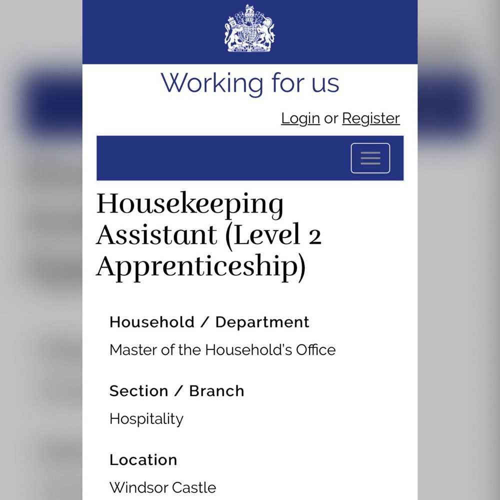 Queen of England II. Elizabeth announces that she is looking for a housekeeping staff member.