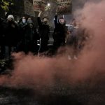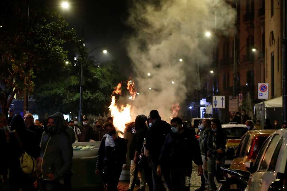 A group protesting the curfew in the capital city of Rome, lit a torch in the middle of the street.