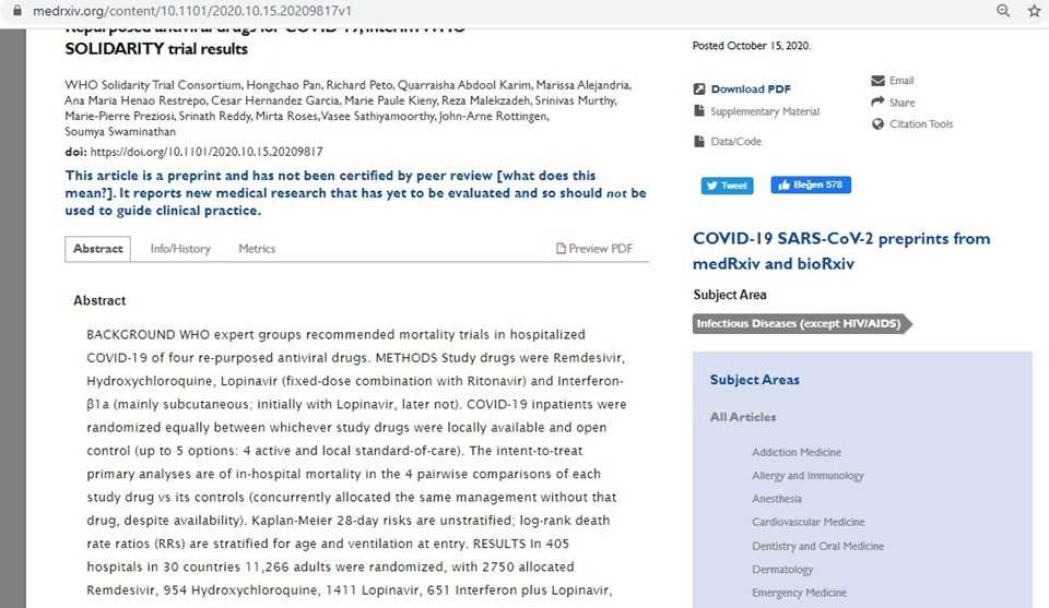 The World Health Organization (WHO) has published a report claiming that remdevisir, which is the leading drug of these drugs, has limited or no effect on clinical patients.